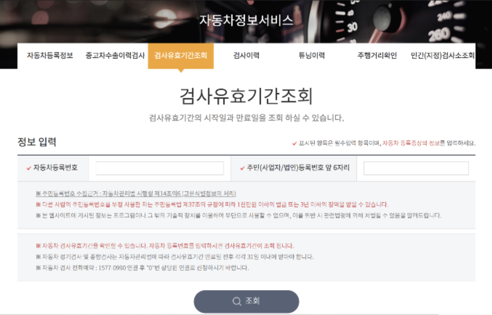 차량번호와 소유자 주민등록번호 앞자리만 입력하면 끝! 참 쉽죠?