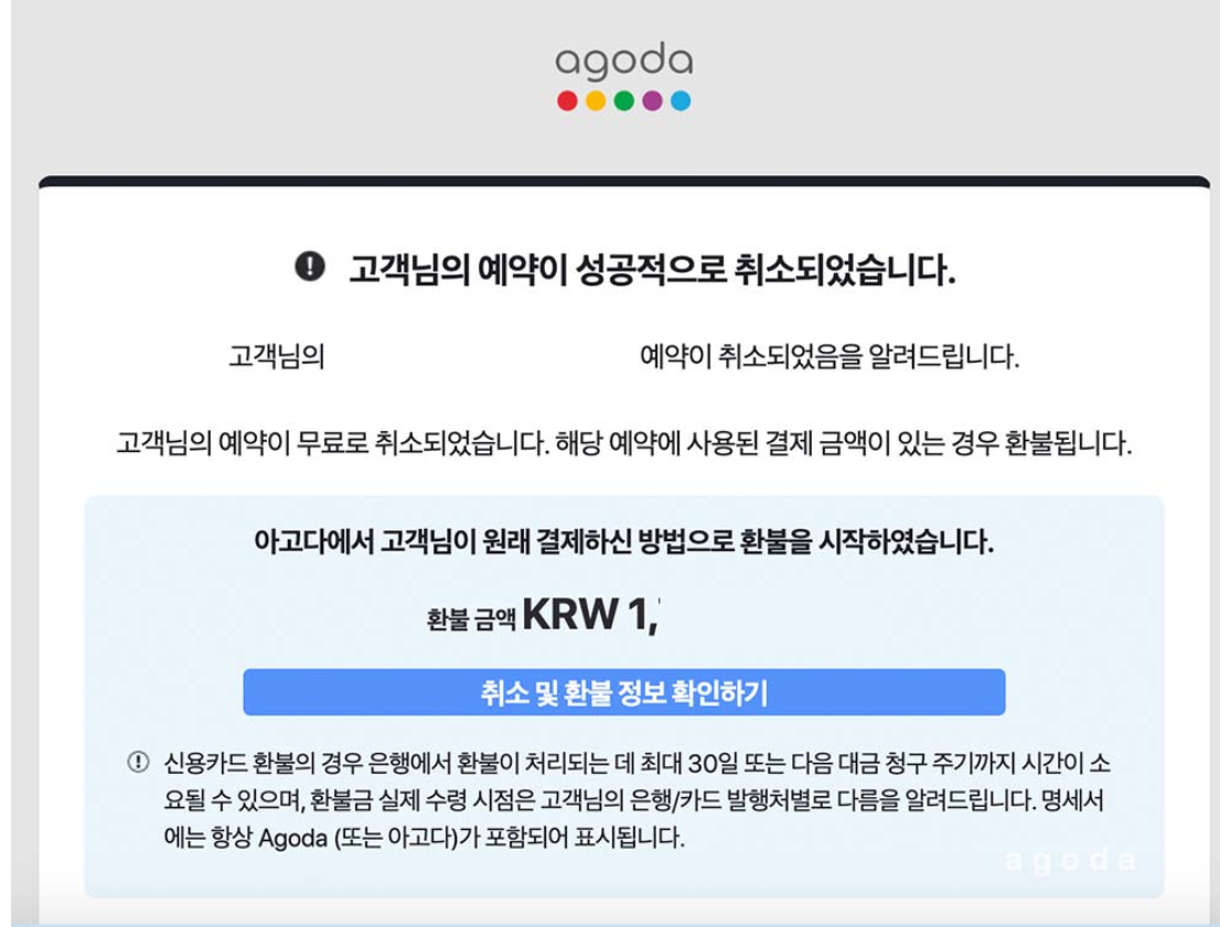 아고다에서 발송하는 취소 확인 이메일을 통해서도 확인할 수 있으니, 이메일도 꼭 확인하세요!